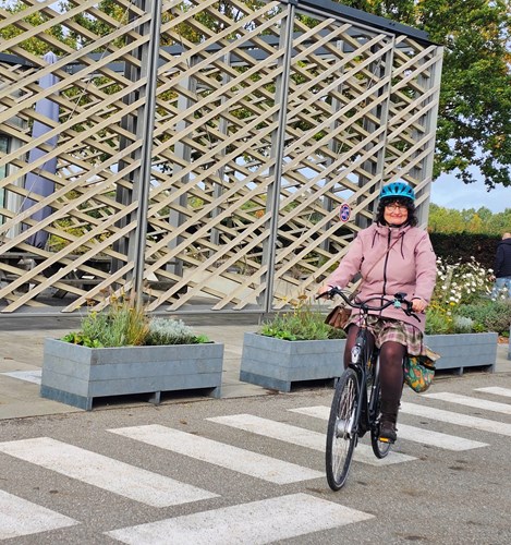 Petra is uitgesproken over veilig fietsen. “Ik draag altijd een helm. Dat begon na een bezoek aan een revalidatiecentrum. Het verschil tussen vallen mét en zonder helm was groot. Zonder helm hielden mensen blijvend letsel over. Sindsdien: helm op. En ja, ook voor korte stukjes.” IJdelheid is voor haar geen excuus. “Ik koos een model en kleur waar ik blij van word.”